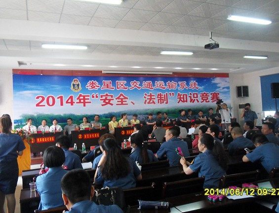 6月12日上午, 2014年婁星區(qū)交通運輸系統(tǒng)“法制、安全”知識競賽在區(qū)交通運輸局8樓會議室舉行,區(qū)人大副主任龍曉濤、副區(qū)長廖亞斌、區(qū)政協(xié)副主席彭國忠及市交通局有關領導親臨現(xiàn)場。