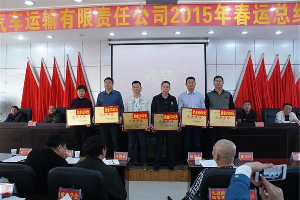 董事長兼總經理彭瑞華等公司領導為2015年春運先進班組頒獎