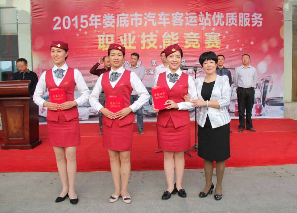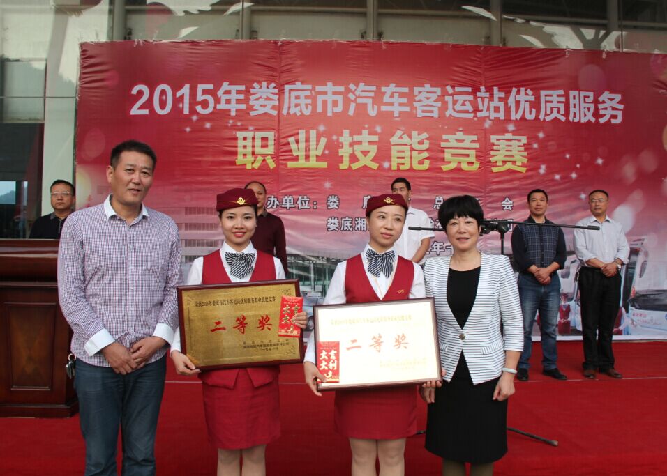 10月22日,由婁底市總工會和婁底湘運(yùn)集團(tuán)聯(lián)合舉辦的2015年婁底市汽車客運(yùn)站優(yōu)質(zhì)服務(wù)職業(yè)技能競賽在婁底汽車南站圓滿落下帷幕。在為期兩天的比賽中,來自全市各縣市區(qū)的六支代表隊,30名選手進(jìn)行了激烈角逐,婁底汽車南站代表隊以雄厚實力斬獲團(tuán)體一等獎,同時被授予“婁底市五一先鋒集體”榮譽(yù)稱號,婁底客運(yùn)分公司代表隊、新化分公司代表隊獲得團(tuán)體二等獎。婁底汽車南站王菲成功摘得個人桂冠,并被授予“婁底市五一標(biāo)兵”榮譽(yù)稱號。婁底客運(yùn)分公司邱媚等獲得個人二等獎。新化分公司周海燕等獲得個人三等獎。婁底市人大常委會黨組副書記、副主任、市總工會主席肖有勝,市總工會黨組書記、常務(wù)副主席鄧煥章,公司董事長兼總經(jīng)理彭瑞華等領(lǐng)導(dǎo)出席了開、閉幕式典禮。