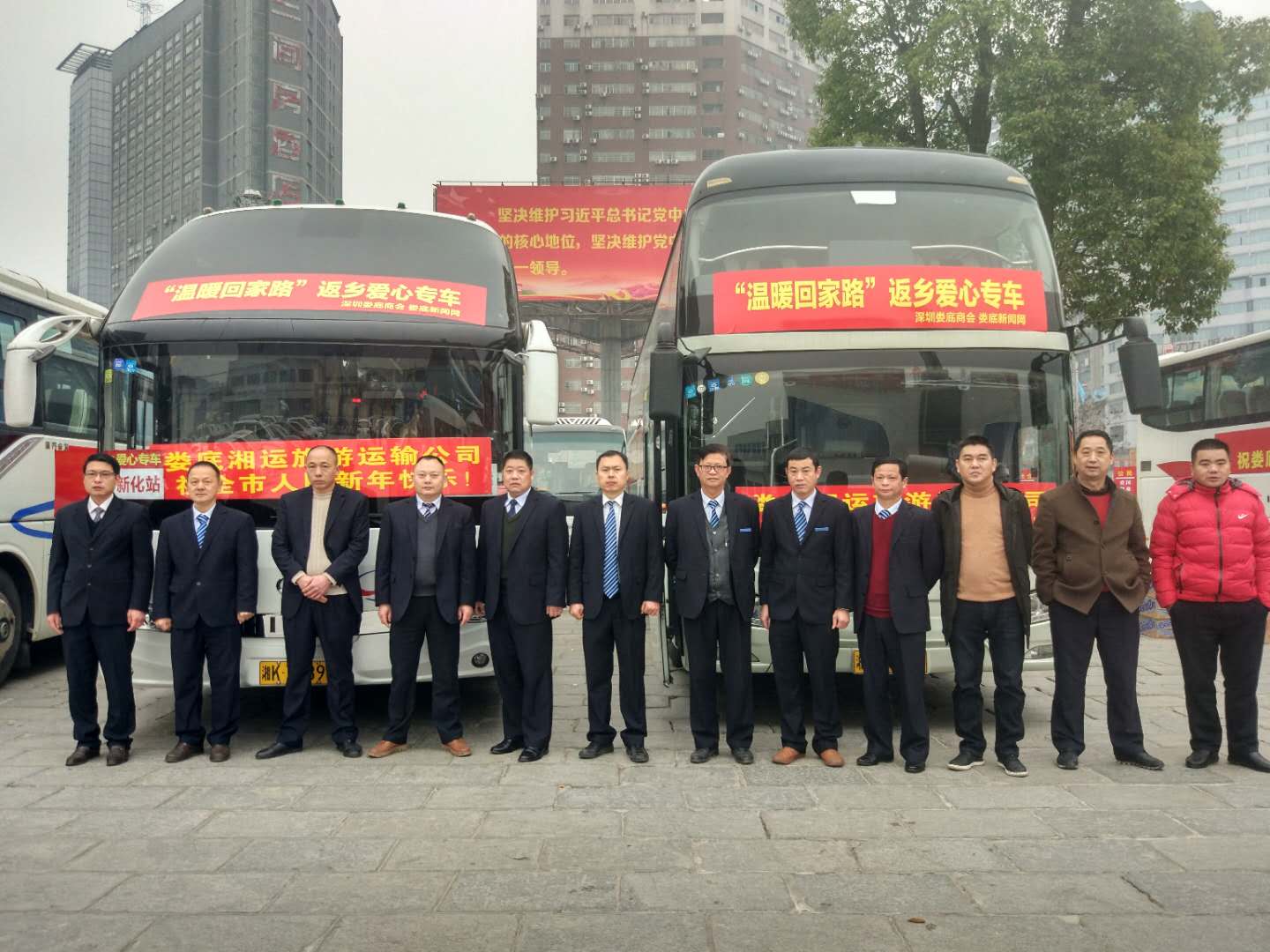 據(jù)了解,"溫暖回家專車″免費接送困難務(wù)工人員返鄉(xiāng)活動是由市人社局、市總工會、市交通局主辦的2019年度“溫暖回家路”大型公益活動十大活動之一,婁底湘運旅游運輸公司光榮承接了此次運輸任務(wù)。此次任務(wù)得到了集團的高度重視,集團董事長、總經(jīng)理彭瑞華進行了親自指導(dǎo)并于25日來到旅游公司對"溫暖回家專車″運力準備工作進行現(xiàn)場檢查。為圓滿完成此次運輸任務(wù),旅游公司認真部署,精心準備,挑選了資質(zhì)優(yōu)、性能好、技術(shù)過硬的車輛和駕駛員,對參加此次任務(wù)的車輛進行了全面安全技術(shù)檢查,確保車況良好,對駕駛員進行了重點安全行車教育和培訓(xùn)。公司共派出五臺豪華大巴赴深圳,分五條線路接返鄉(xiāng)人員回婁底五縣市區(qū),從深圳返鄉(xiāng)行程約八百公里,預(yù)計行車時間12小時左右,公司為每臺車配備了兩名駕駛員,采取輪流換班、嚴格執(zhí)行每四小時落地休息以及夜間凌晨2點到5點休息制度和“五不兩確保”安全承諾。車上還為乘客貼心準備了食品、飲料、水果,更有活動組織方提供的大禮包,返鄉(xiāng)人員一坐上車,就會感受到來自家鄉(xiāng)的濃濃溫暖情。公司負責(zé)人表示,一定會為返鄉(xiāng)親人們提供一個安全、舒適、優(yōu)質(zhì)的乘車環(huán)境,確保他們平安到家。