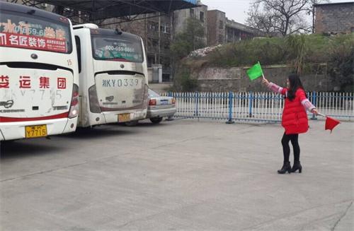 下圖為:“彩虹橋”優(yōu)質(zhì)服務(wù)班陳丹認(rèn)真細(xì)心的指揮婁底車輛倒出發(fā)班車庫,指名倒車的穩(wěn)妥方位,確保安全發(fā)班出庫。